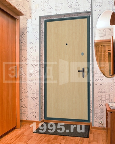 С внешней стороны стальное полотно оббито дутой винилискожей, которая отлично подходит для интенсивной эксплуатации. Изнутри дверь отделана красивым и износостойким ламинатом.