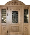 Стальная дверь с массивом дерева боковыми остекленными вставками и арочным карнизом