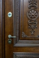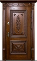 Стальная дверь с массивом дуба, резьбой и карнизом