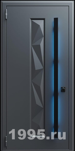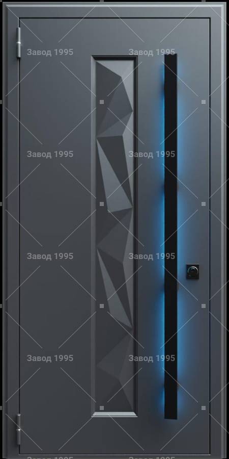 Стальная дверь с металлофиленкой, длинной ручкой с подсветкой и темно-серым порошковым окрашиванием RAL 7021 (тип №7)