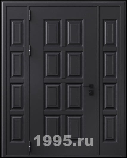 Стальная дверь с металлофиленкой, вставками по бокам и порошковым окрашиванием RAL 9004 (тип №1)