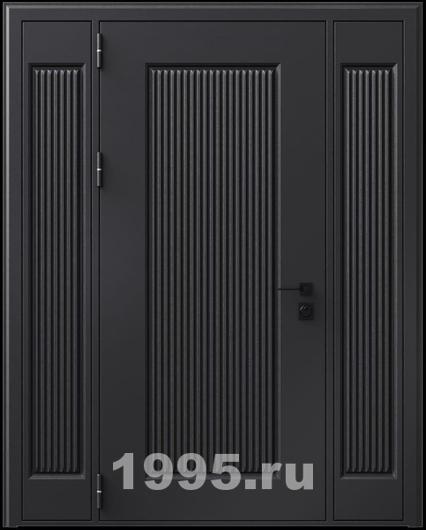 Стальная дверь с металлофиленкой, вставками по бокам и порошковым окрашиванием RAL 9004 (тип №9)