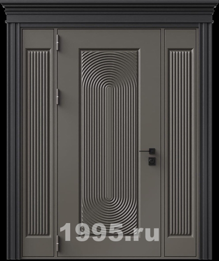 Стальная дверь с металлофиленкой, вставками по бокам, карнизом и порошковым покрытием RAL 7022 (тип №3)