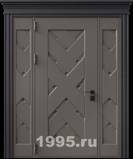 Стальная дверь с металлофиленкой, вставками по бокам, карнизом и порошковым покрытием RAL 7022 (тип №5)