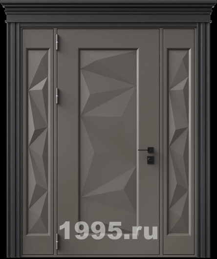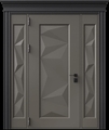 Стальная дверь с металлофиленкой, вставками по бокам, карнизом и порошковым покрытием RAL 7022 (тип №6)