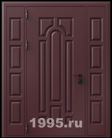 Стальная трехконтурная дверь с металлофиленкой, вставками по бокам и порошковым напылением RAL 3007 (тип №2)
