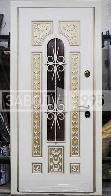 Производство эксклюзивной белой двери с ковкой и стеклом